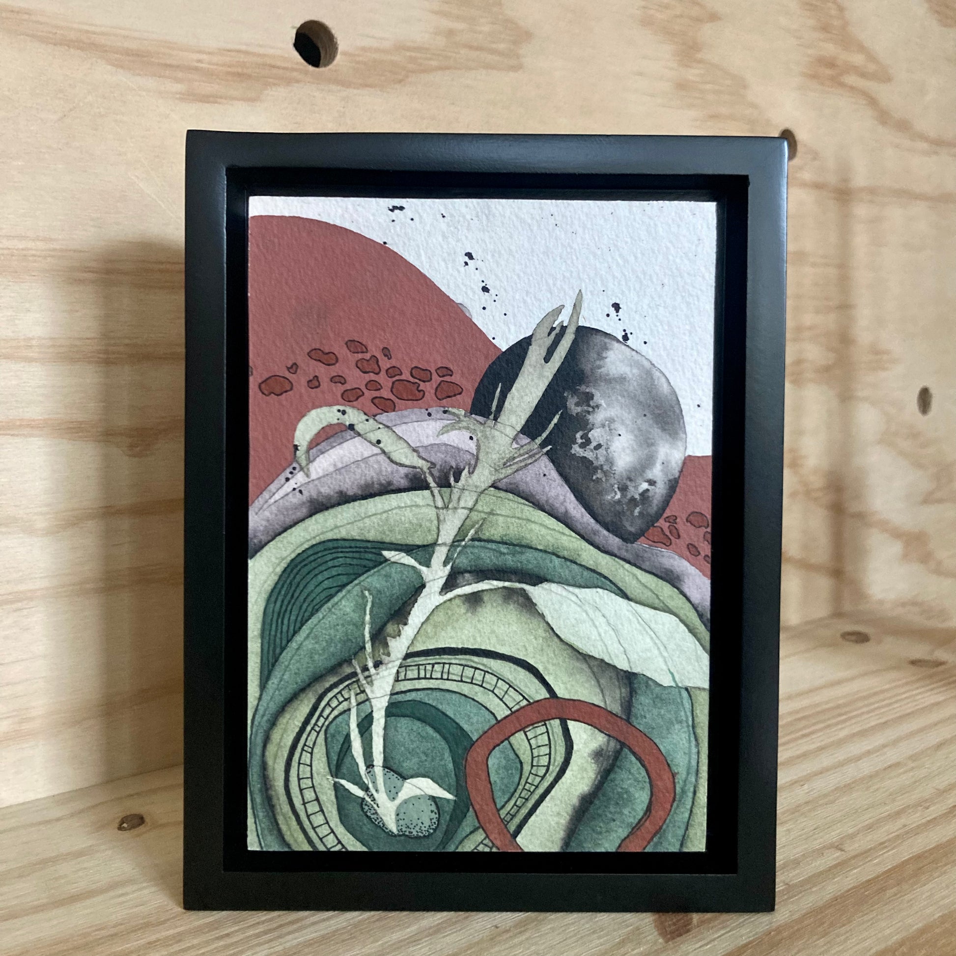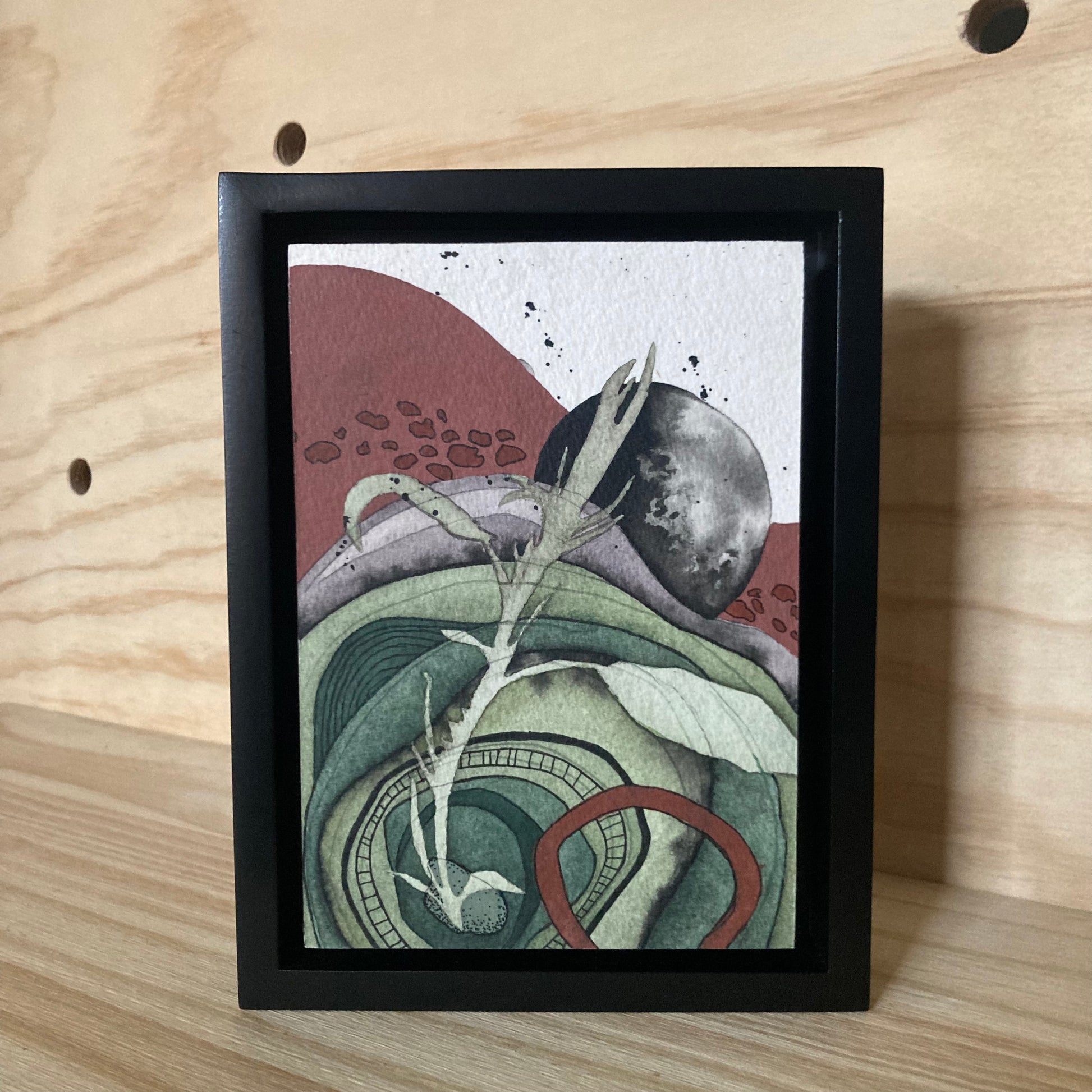 original watercolor painting on archival quality 100% cold press watercolor paper. The painting is mounted to a basswood panel and is sealed with a uv protectant spray and wax/resin layer to protect against moisture and dust. the panel has a wire on the back so the painting is ready to hang on your walls and add some whimsy to your space! It also looks nice standing on a shelf.