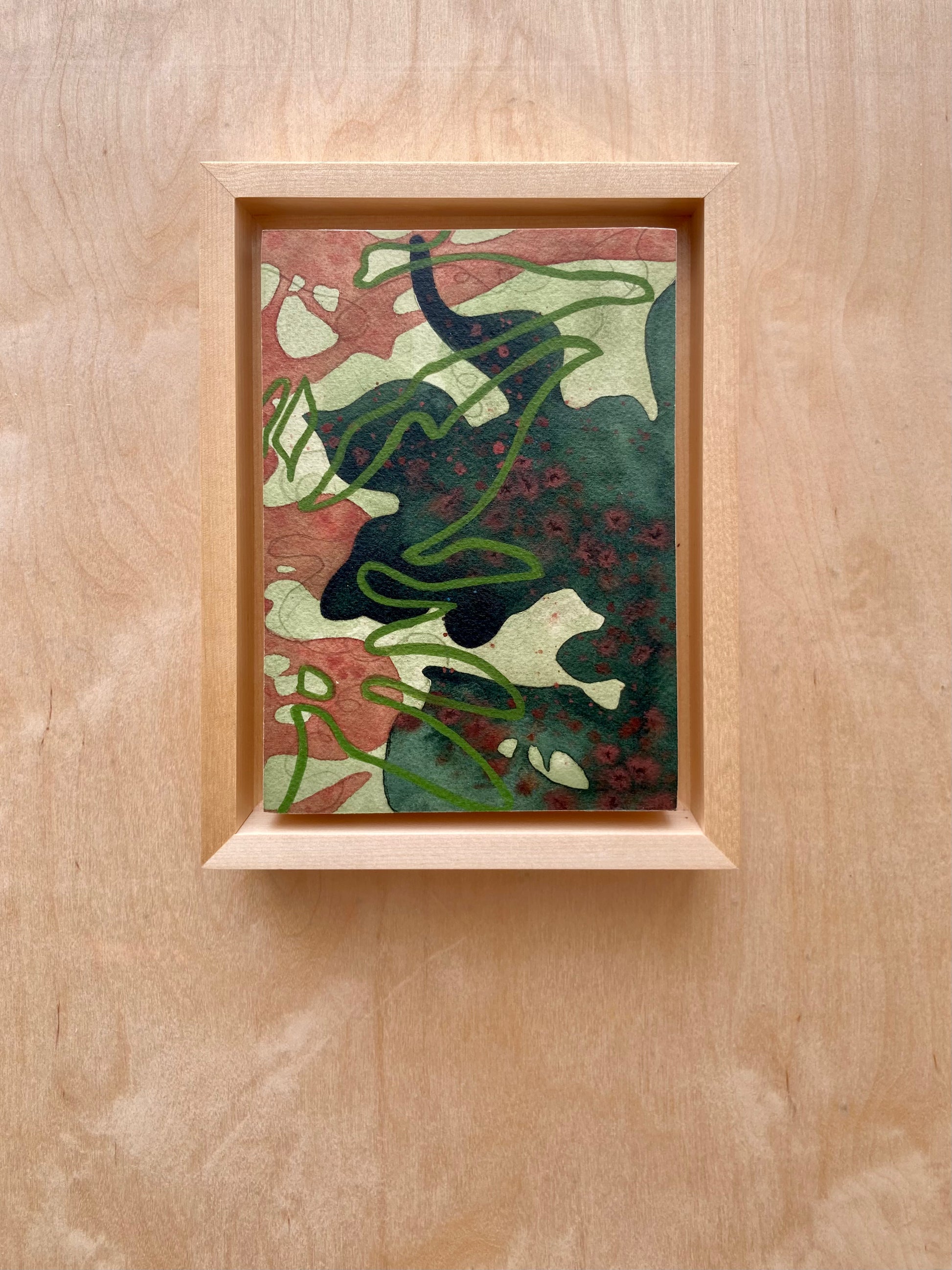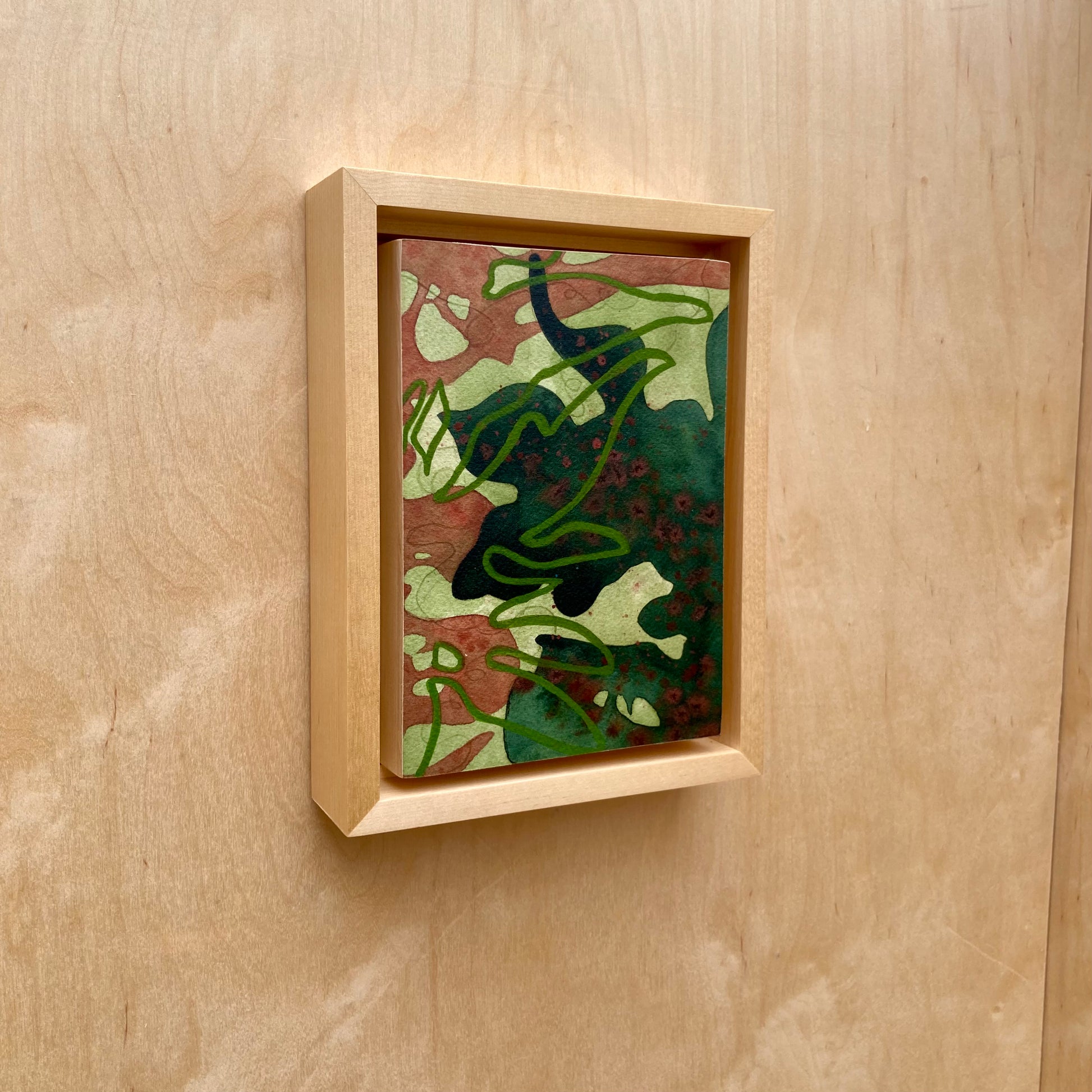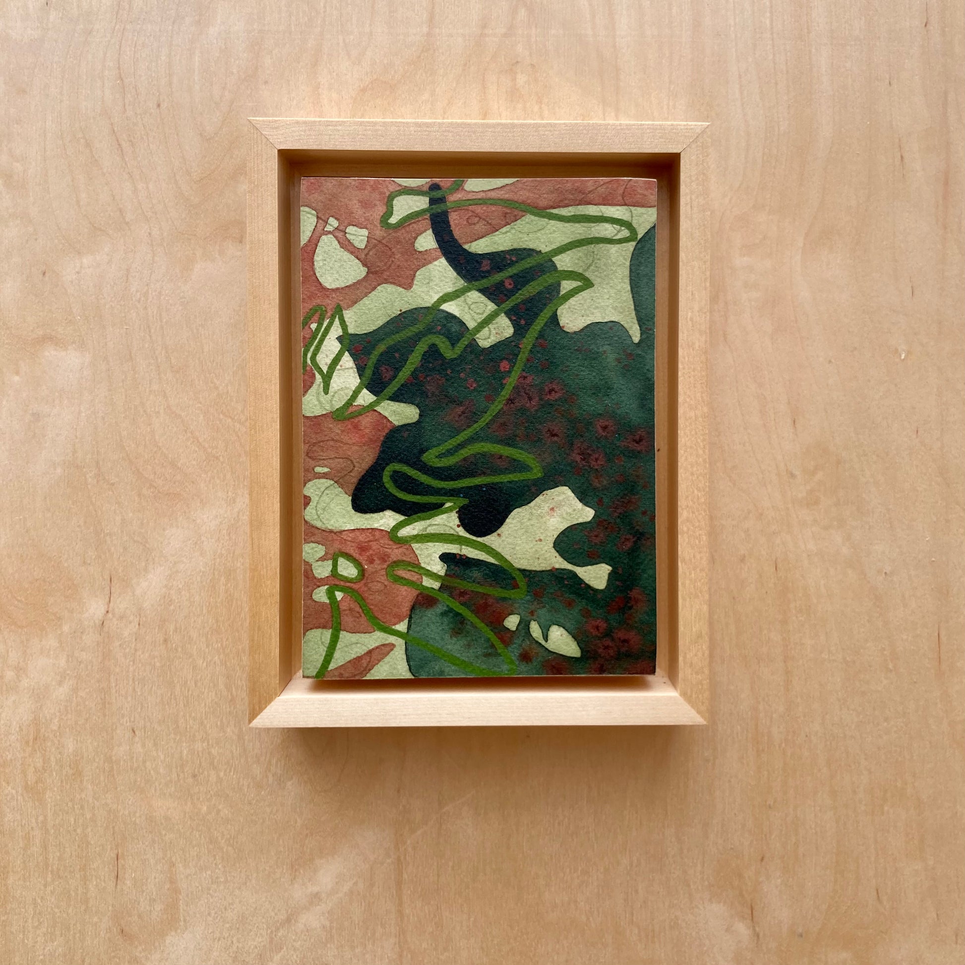 the painting measures 5x7 inches, 6 1/2 x 8 1/2 x 1⅞ inches in the maple frame.