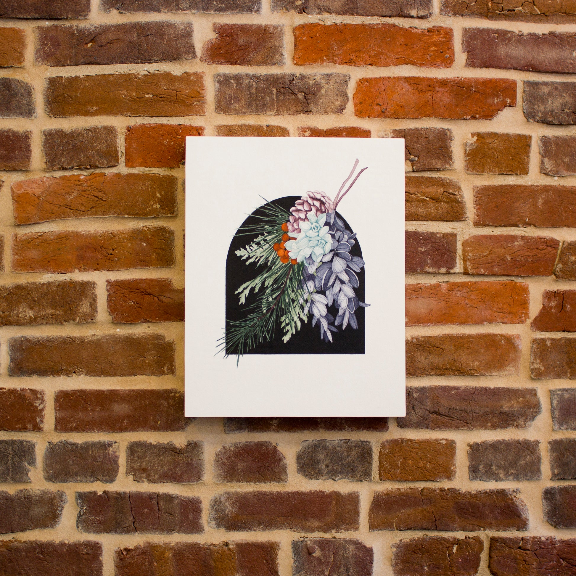 original watercolor painting on archival quality 100% cold press watercolor paper. The painting is mounted to a basswood panel that measures 11x14 inches, and 1.5 inches deep, and is sealed with a uv protectant spray and wax/resin layer to protect against moisture and dust. the panel has a wire on the back so the painting is ready to hang on your walls and add a celebration of botanicals to your space!
